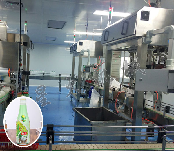 星火椰子奶灌裝封口旋蓋生產(chǎn)線客戶生產(chǎn)車間展示