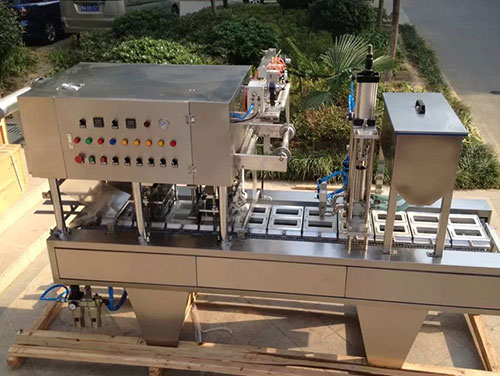 星火為客戶量身定做一出二卷膜灌裝打碼封杯機