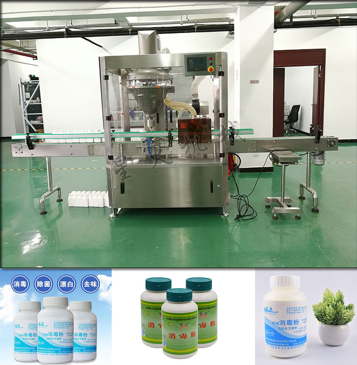 全自動(dòng)瓶裝消毒粉灌裝機(jī)-消毒粉末粉劑灌裝線