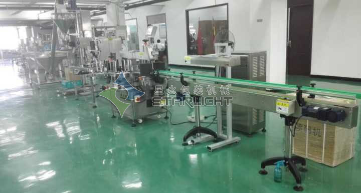 1、上料機 2、粉劑灌裝機 3、臺式旋蓋機 4、平面貼標(biāo)機 5、噴碼機 6、電磁感應(yīng)鋁箔封口機